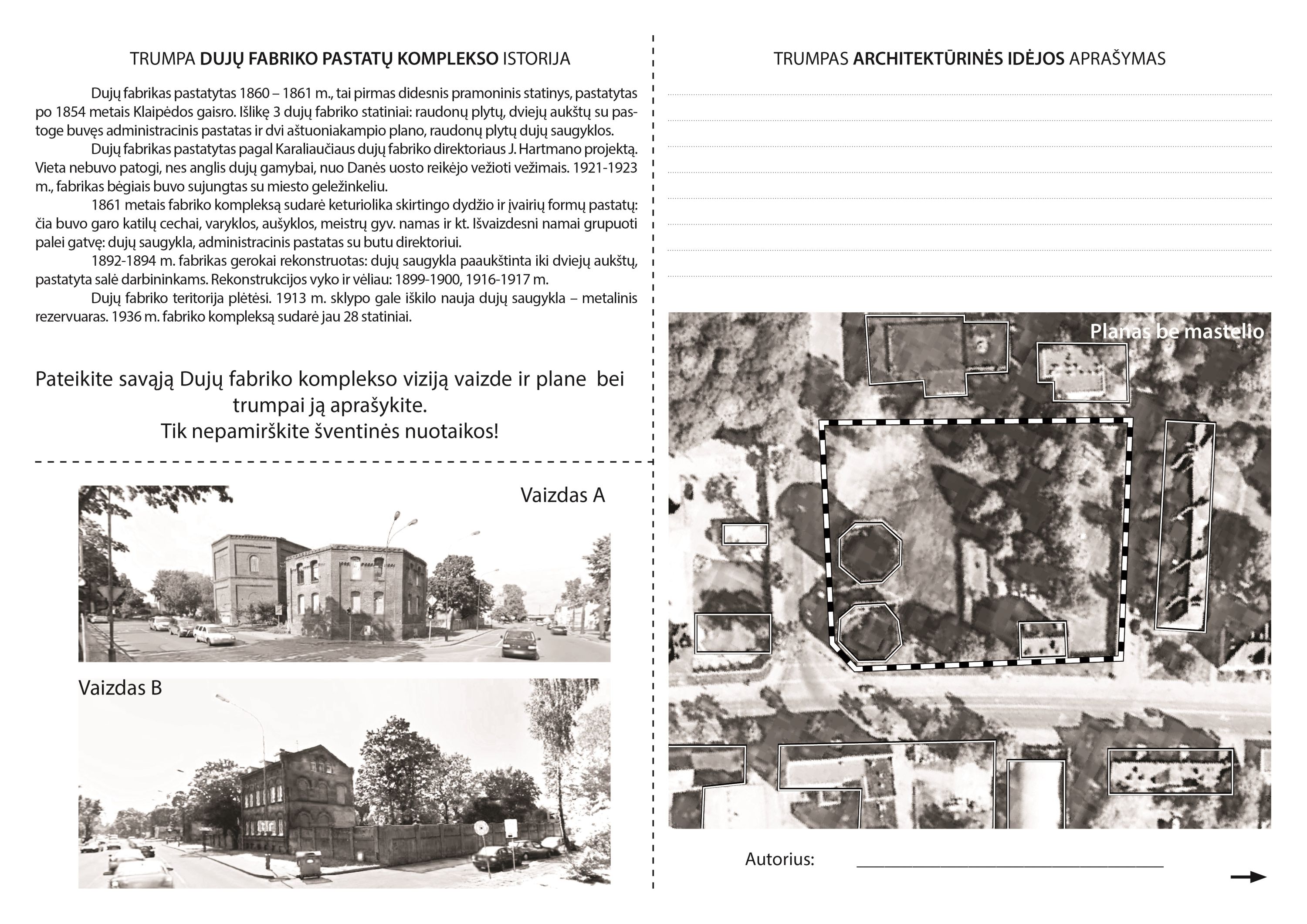 Bilietas į vakarinio renginio teritoriją – idėja Dujų fabrikui (Idėjos pateikimo forma čia).